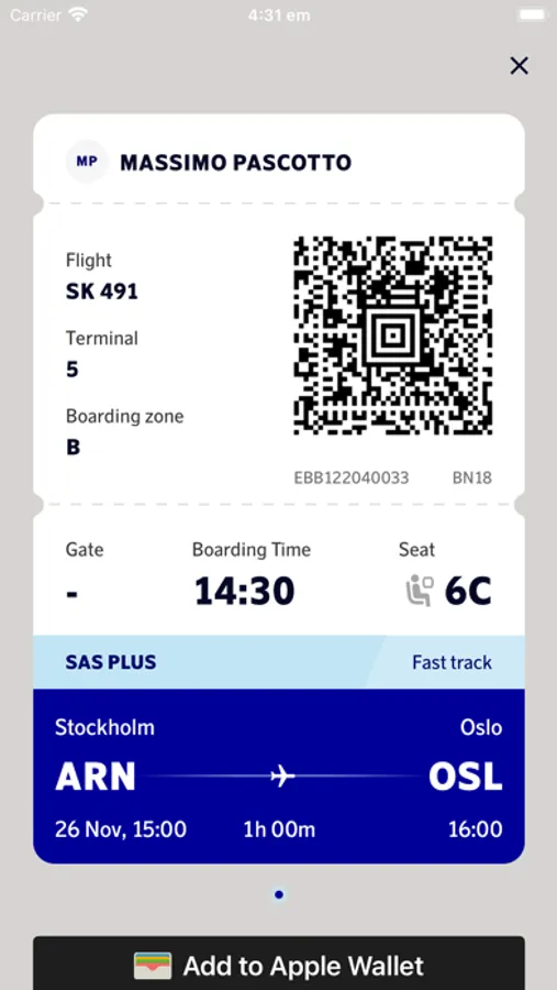 • Get your digital boarding card instantly and add it to Apple Wallet.
