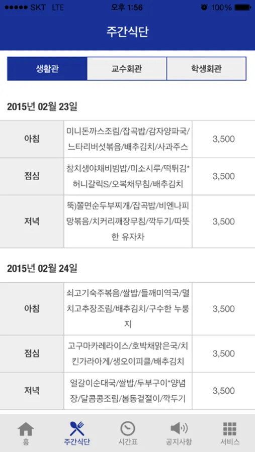 * 학생서비스 : 모바일학생증, 시간표, 학사일정, 자유게시판