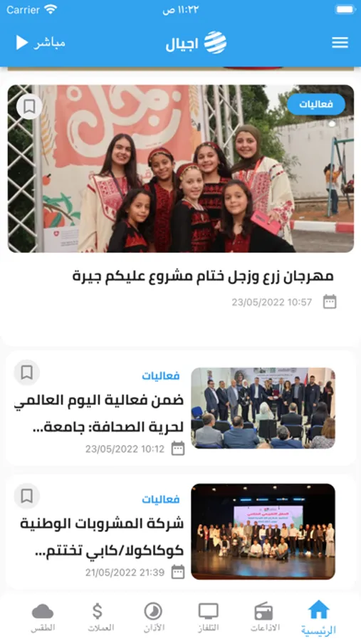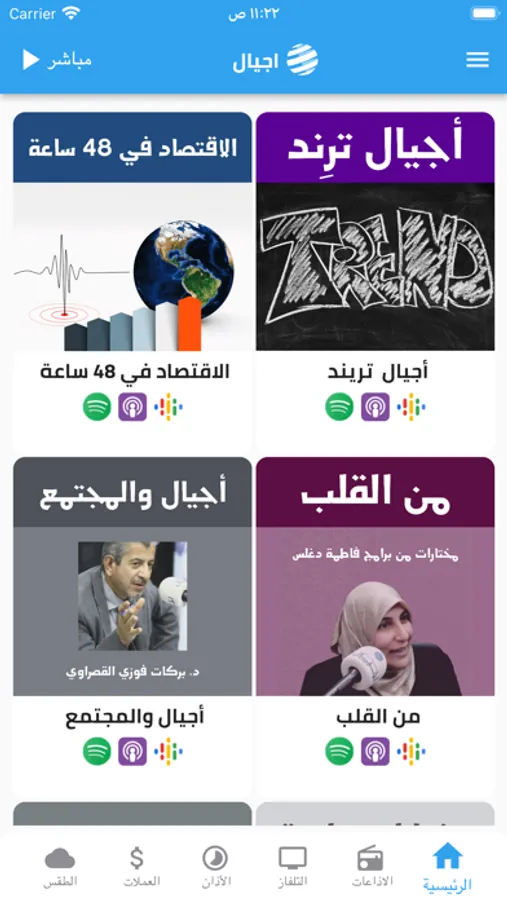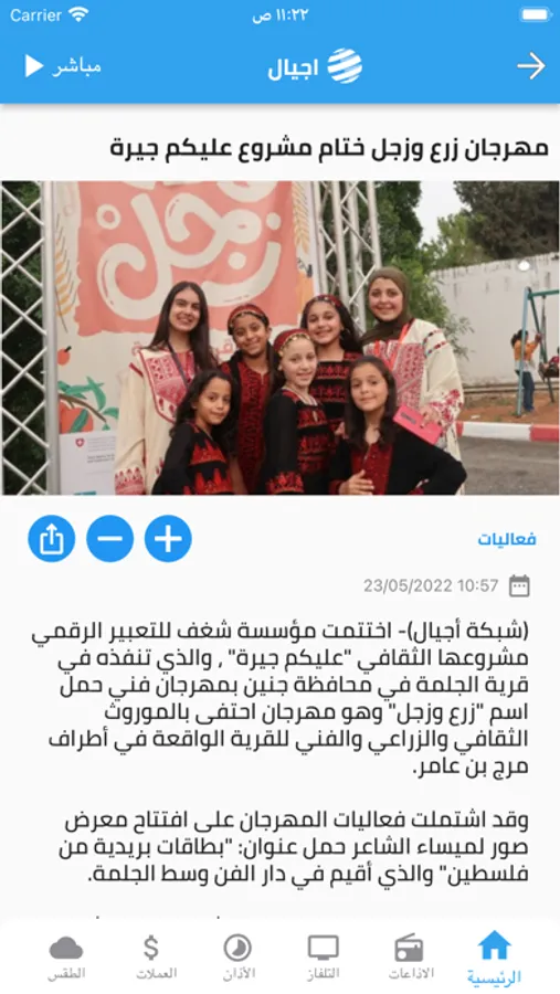 تطبيق شبكة أجيال الإعلامية من فلسطين، راديو – إنترنت – تلفزيون