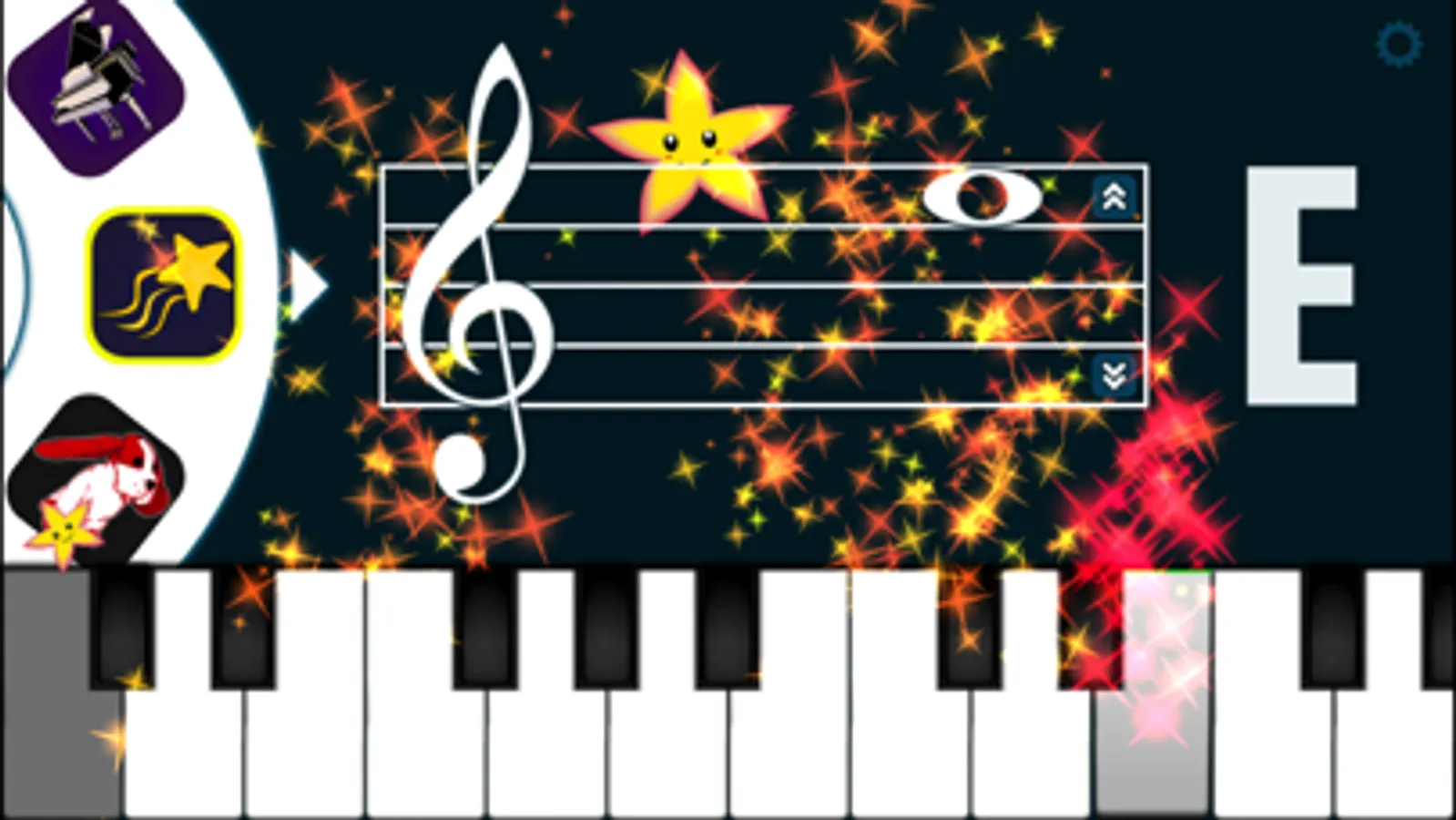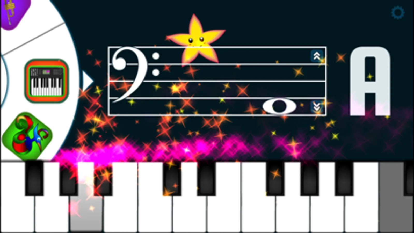 This piano app provides oodles of visual effects and even teaches a song for kids to learn. It can help beginners learn the letter names for notes on the bass and treble clef ("F" on bass through to "G" on treble). Our preschooler really likes the stars and sparkles!