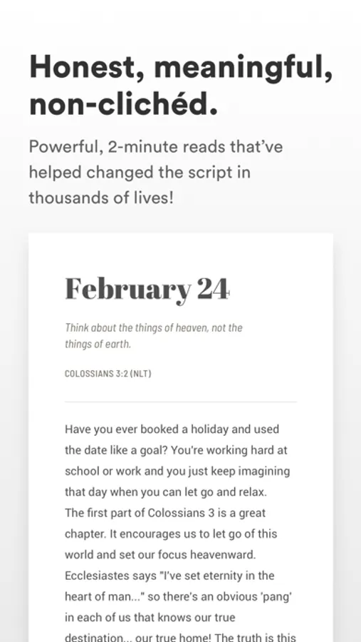 The daily devotions dig deep into our sacred and ancient texts, they avoid cliché and sit with ambiguity, all while nurturing your curiosity and wonder. They're powerful, two minute reads that are simple but have helped change the script in thousands of people's lives.