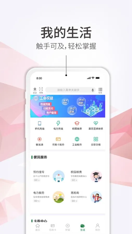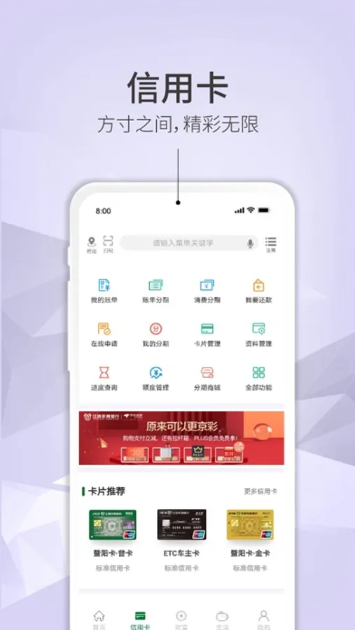 3、丰富了信用卡中心、财富中心、生活中心;