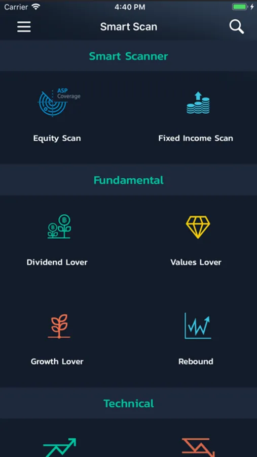 Stock screening, as ASP covers more than 90% of SET Market capitalization, clients can screen stocks under ASP Coverage with maximum 5 criteria i.e. PER, PBV,