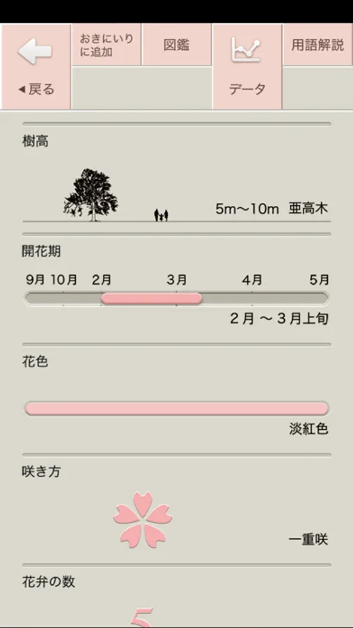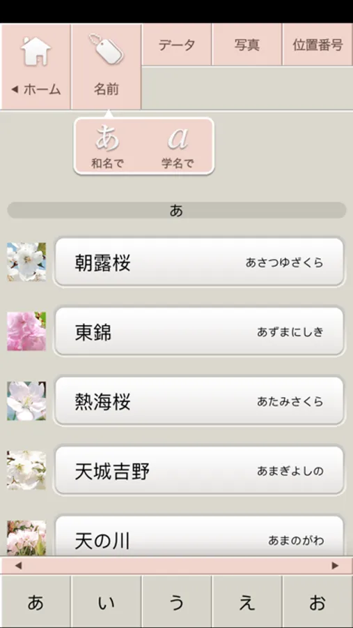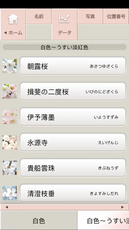 ・6種類の図鑑検索機能(和名・学名・花の色・開花期・写真・位置番号による検索)