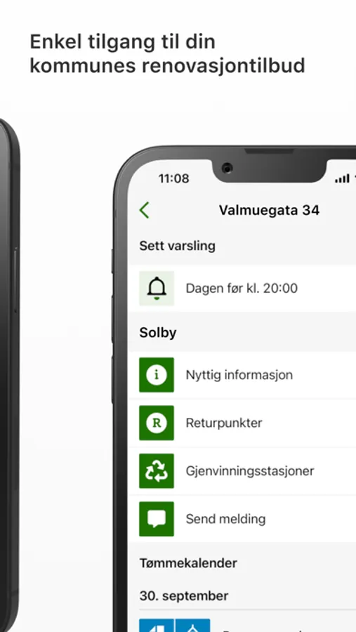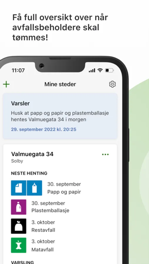 The app MinRenovasjon gives you an overview of when your waste is collected and an option to get push notifications so that you remember to get the waste containers ready. The app also provides information about waste sorting and recycling stations in your municipality.