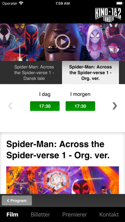 Med denne app har du mulighed for at gennemse programmet for Kino 1&2, samt se yderligere filminformationer som trailer, censur, medvirkende skuespillere, varighed m.m.