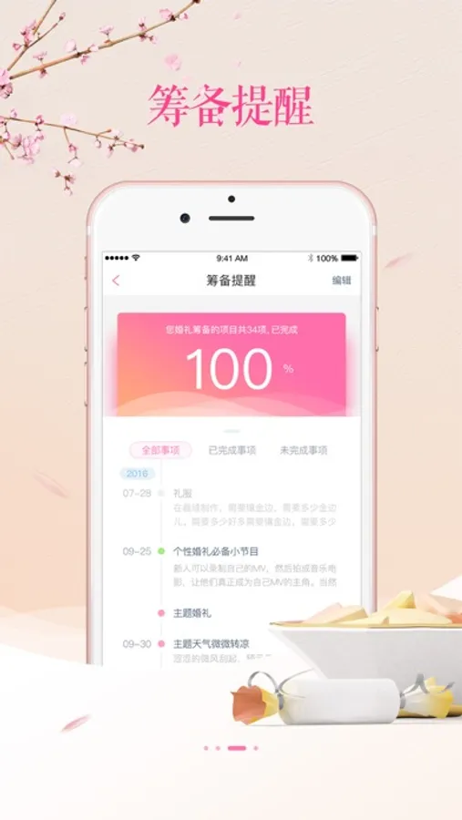 【筹备提醒】帮你全程计划婚礼筹备中的重要角色、物品和事件,并新增自动提醒;