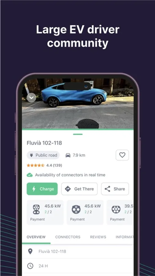 - contribute to the community by commenting, rating, and sharing pictures of the charging stations you visit