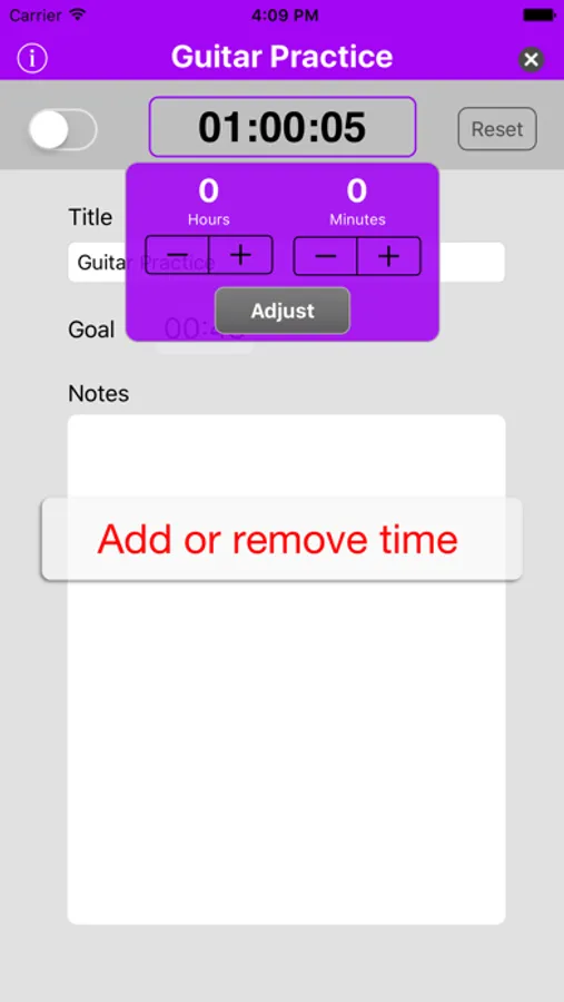 Best of all, you can easily add or subtract time from any event, for those times when you forget to start or stop the timer!