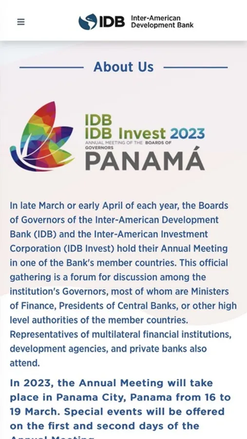 The Annual Meeting of the Boards of Governors of the IDB and IDB Invest will be held in Panama City, Panama, from 16 to 19 March 2023.