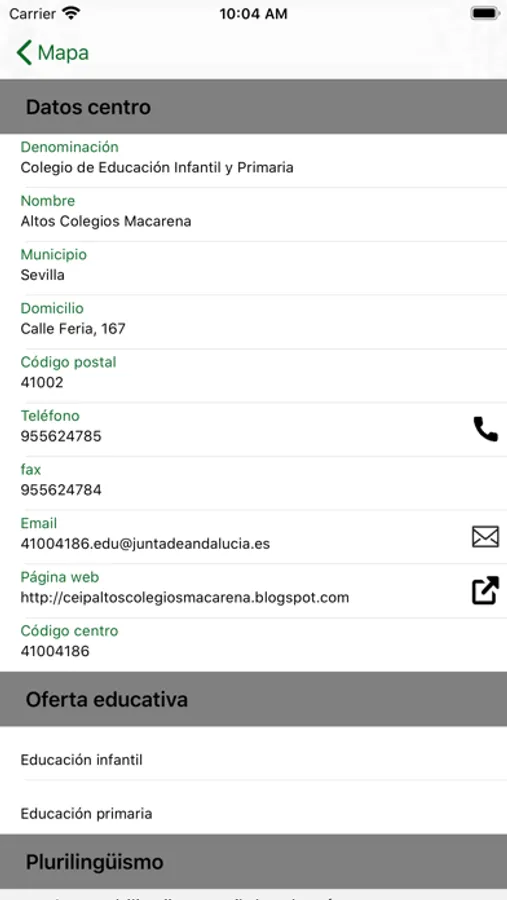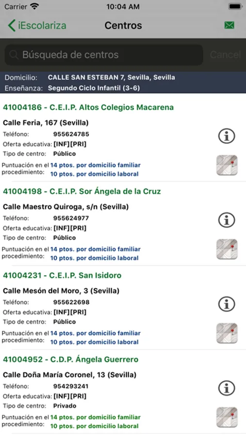 Consulta de centros y puntos para el proceso de escolarización de los centros sostenidos con fondos públicos de Andalucía.