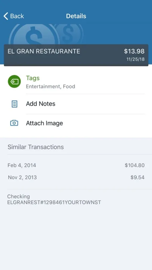 Add Tags, Notes, Images & Geo-Information: By enhancing transactions with custom tags, notes or photos of a receipt or check, you have the ability to stay organized and find exactly what they’re looking for when searching through your finances.