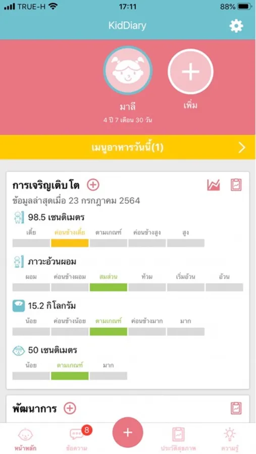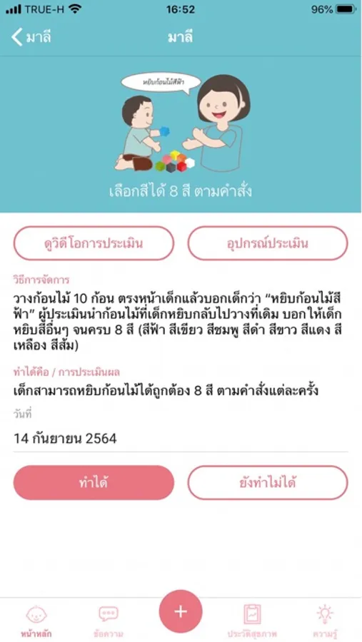 - การประเมินพัฒนาการ สำหรับเด็กแรกเกิด ไปจนถึง 6 ปี 6 เดือน อิงตามคู่มือเฝ้าระวังและส่งเสริมพัฒนาการเด็กปฐมวัย (DSPM) โดยกระทรวงสาธารณสุข พ.ศ. 2562