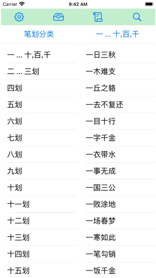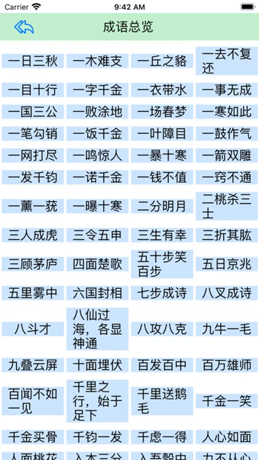 第2層: 所有成語以全页按纽顯示, 快速选取.