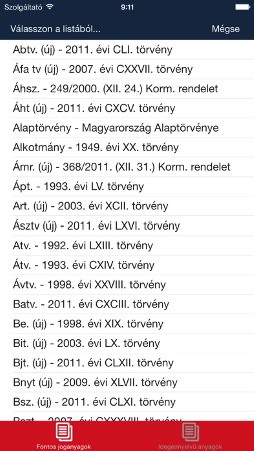 ⁃ Külön funkció áll rendelkezésünkre a leggyakrabban használt jogszabályok keresésére, azok ismert rövidítéseit használva.