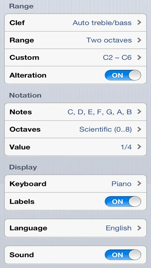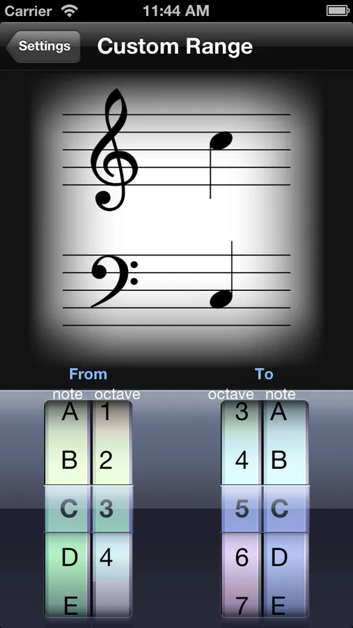 Range of notes to train: