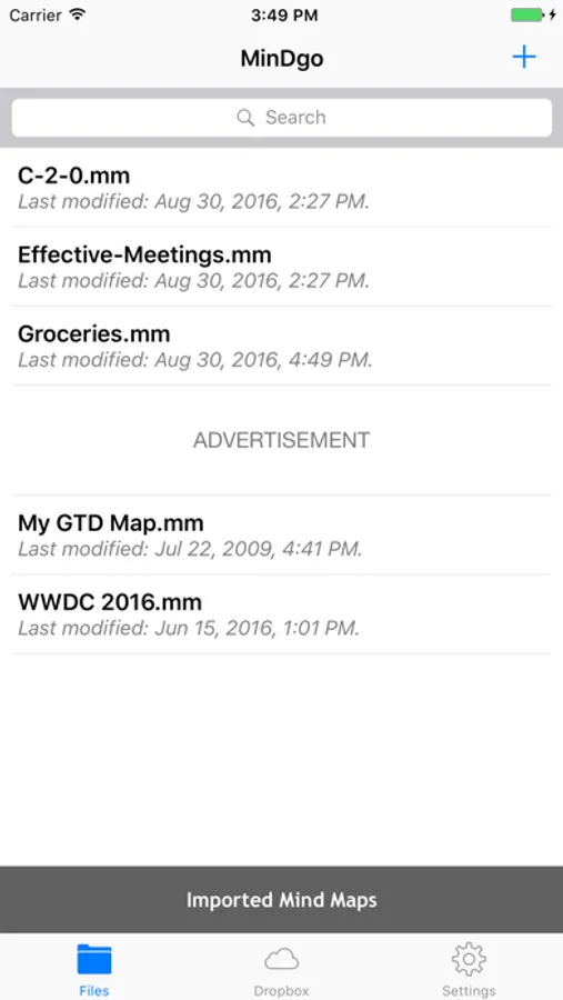 MinDgo is primarily a companion app to FreeMind and Freeplane, two great open source mind-mapping applications for your desktop. MinDgo allows you to view and edit mind maps on your iPhone and iPad.