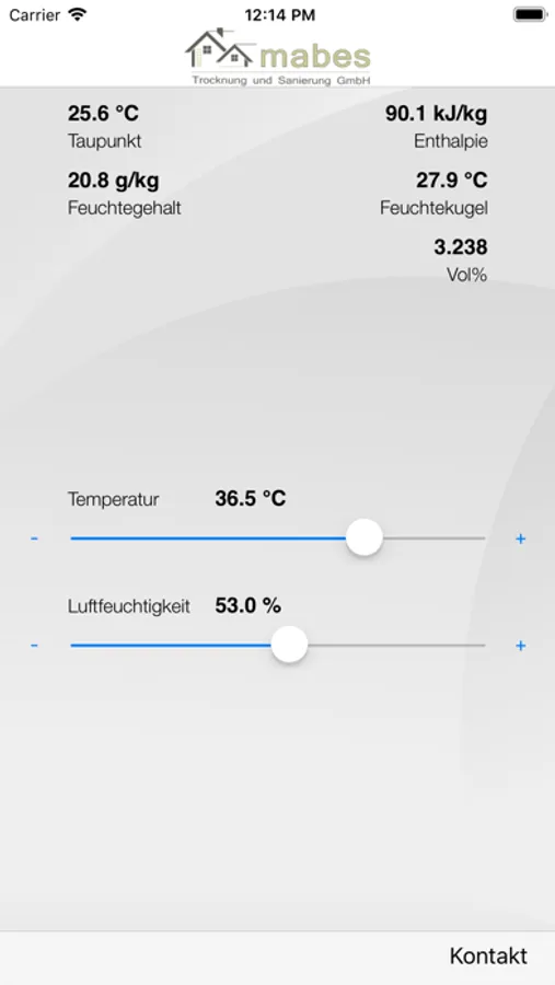 Der Mabes Rechner errechnet nach der Eingabe von Temperatur und Luftfeuchtigkeit ganz einfach Taupunkt, Feuchtegehalt, Feuchtekugel und Enthalpie.