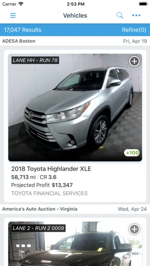 The Stockwave mobile application is designed to aide in searching for Wholesale inventory from all major United States Automobile Auctions and for quickly evaluate the vehicles when at alive auction.