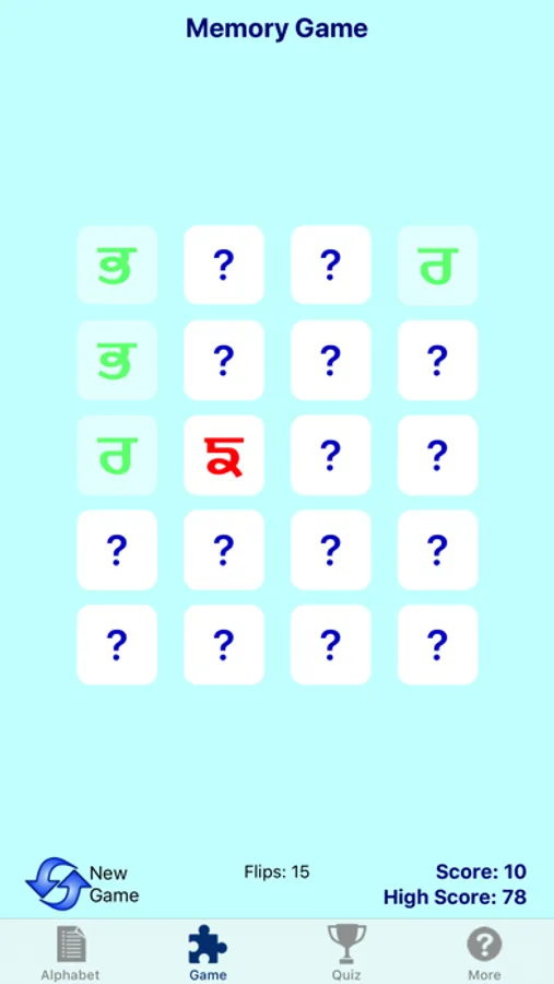 A fun memory game (aim is to find all matching letter pairs) will help to memorize letters and their sounds.