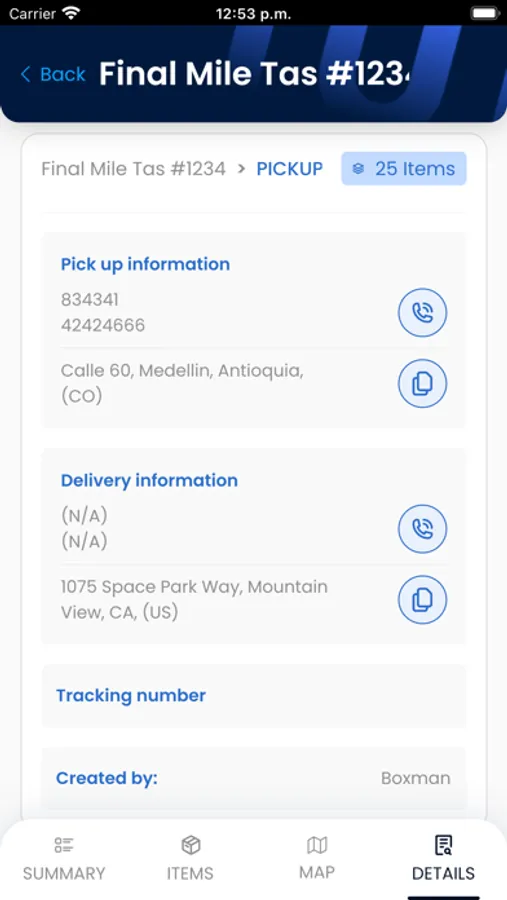As a driver, you can view and accept pickup and delivery tasks, see the best route, and use your phone's built-in navigation to get to the destination quickly. Scan the packages and capture customer signature along with any comments and photos.