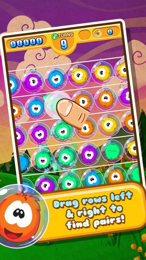 Slide the rows of Sneezies left or right with your finger to find pairs of the same color.
