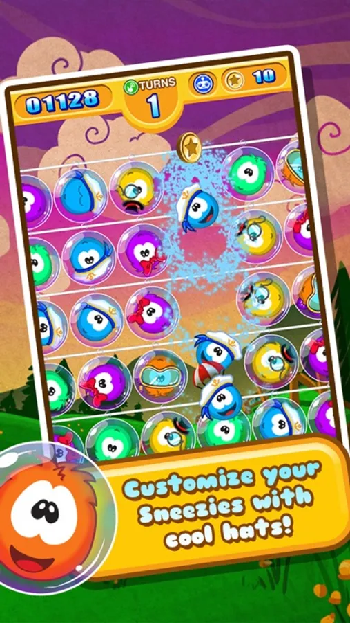 Tap the pairs to make them sneeze and send them parachuting down to safety. You get more points for matching more than 2 Sneezies in a turn.
