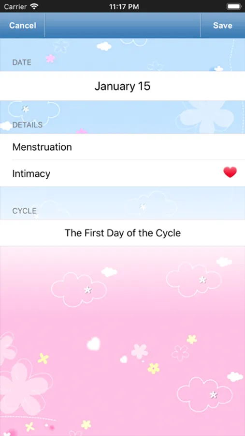 - Average length of the menstrual cycle (adjust it on the “Settings” screen).