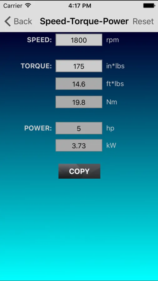 There is also a Speed - Torque - Power calculator. Enter any two variables and have the third calculated. Unit conversions are built into the calculation page.