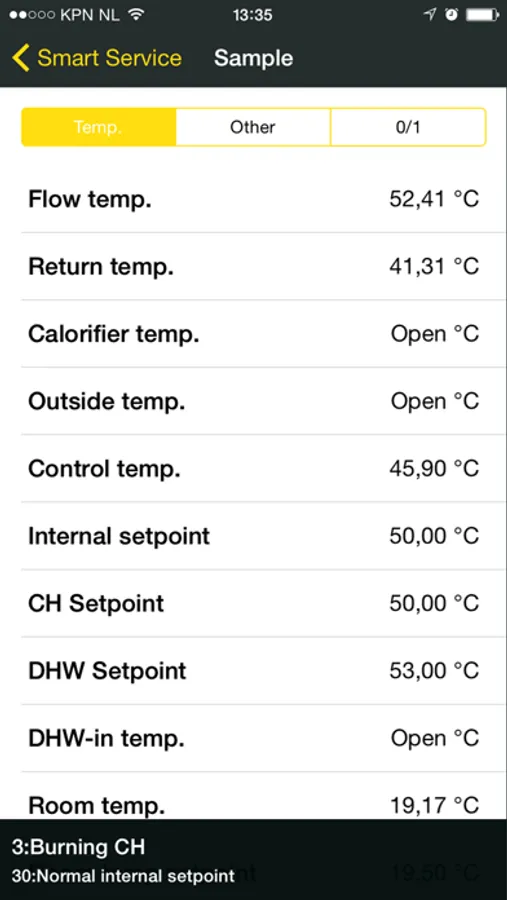 Once the Smart Service App has started up, it will automatically identify the type of unit it is connected to and provide an immediate overview of the unit and all the relevant information.
