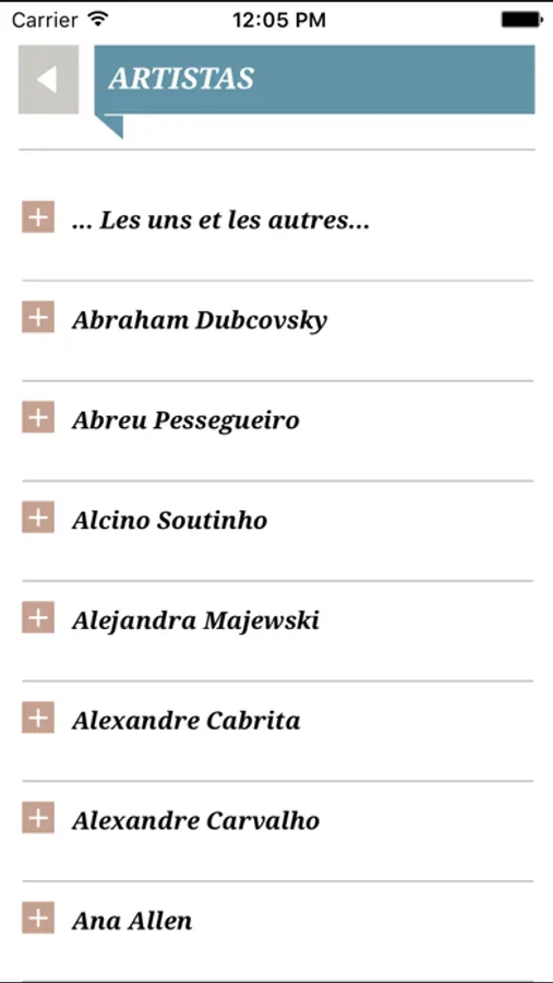 2. Lista de Artistas que colaboram com a Galeria;
