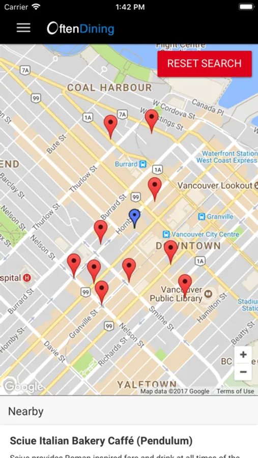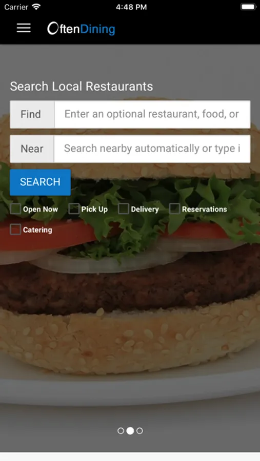 • Search for restaurants by location (GPS or address) and ‘open now’