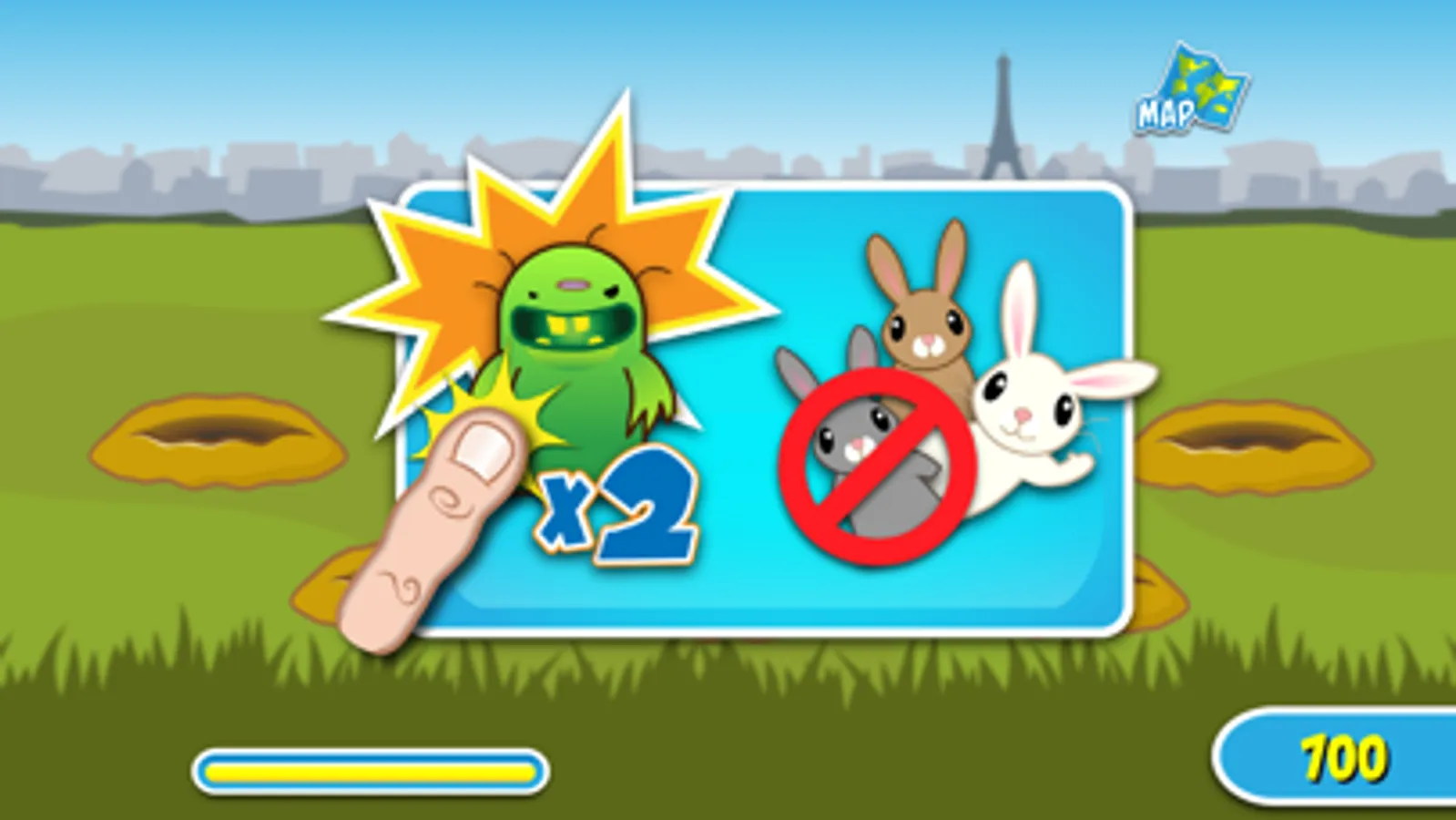 We've added a few twists to the original game. Whacking moles = Good; Whacking bunnies = Bad. Mutant moles, moles with helmets and moles with force fields take a few extra whacks to take down.