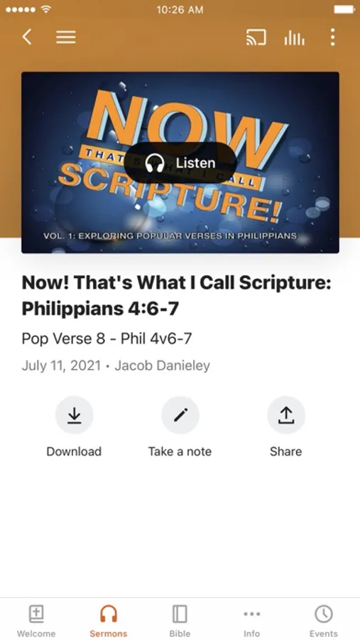 Check out all kinds of content that interests you, including sermons, events, announcements, and tools to help you follow Jesus in your everyday walk. After you've downloaded and enjoyed the content, you can share it with your friends via Twitter, Facebook, or email.