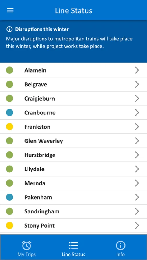 - My Trips allows you set up your stations as well as lines so you can receive the next four timetabled services from your chosen stations and will show alerts for your chosen lines