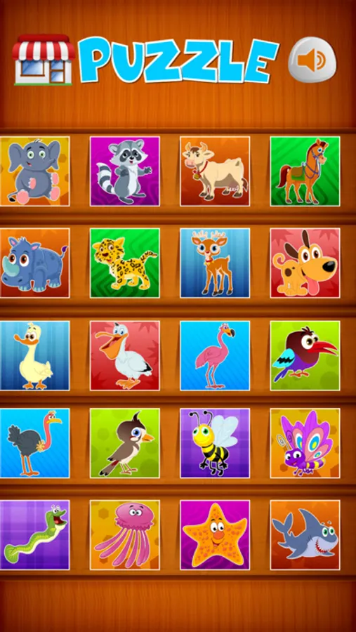 Once the puzzle is solved little stars appear. Enjoy the nice Animal Graphics and experience the progress of your kid.