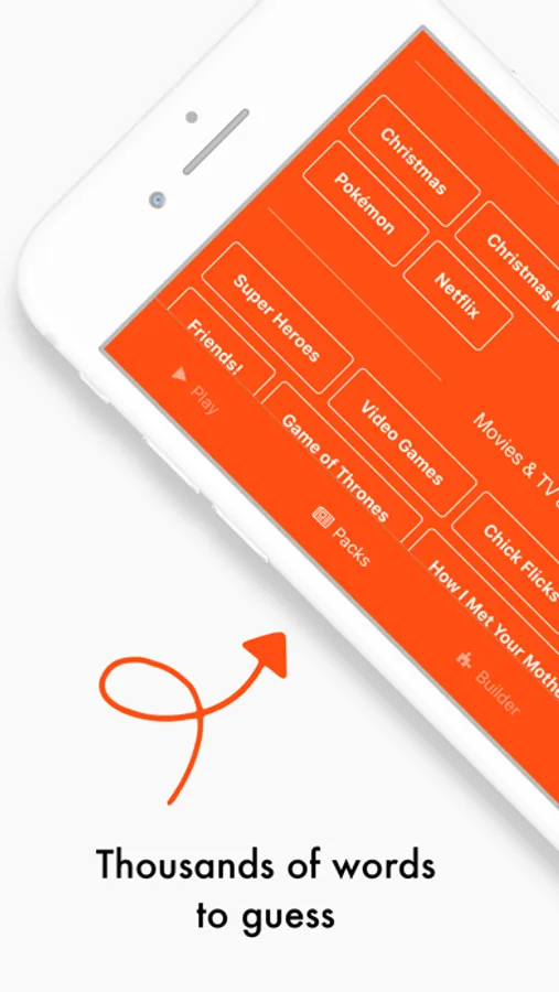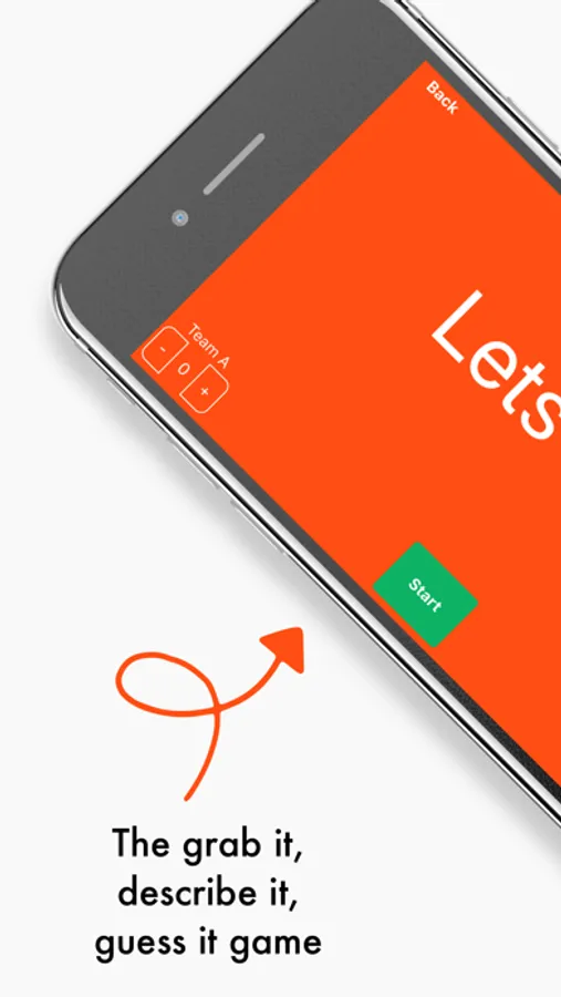 Split up into 2 even teams. Gather in a circle so that no player is sitting next to their teammate (alternate). Choose a player to start the game. The player then has to give clues about the word so that someone on their team shouts it. You cannot say the word or give clues that rhyme with your phrase. When your team guesses the word/phrase, pass the device to the next player (of the opposing team). Swipe left to generate the next word. Keep playing until the time runs out. The team holding the device when the buzzer sounds loses (opposing team gets a point). Repeat until a team has the necessary points to win.