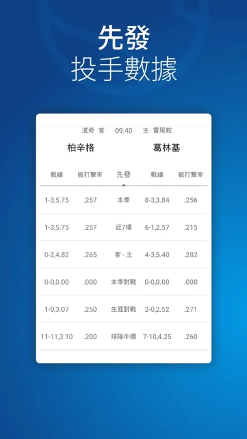 四、完整賽前數據:先發球員、傷兵名單、對戰紀錄、投打數據、過盤率...等等