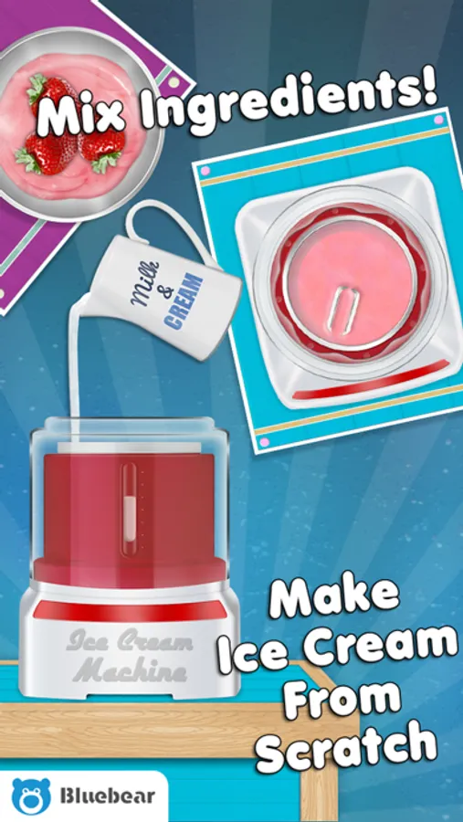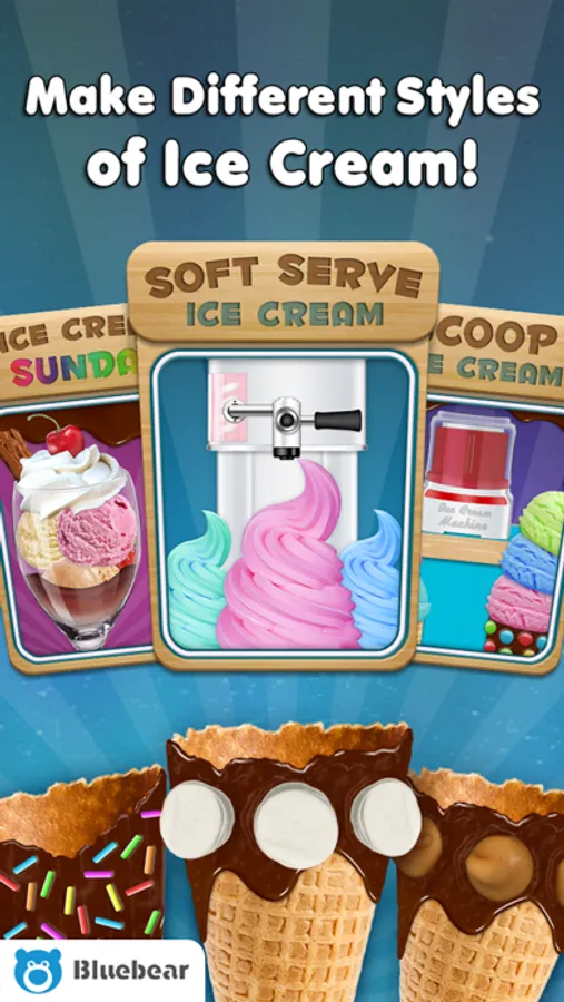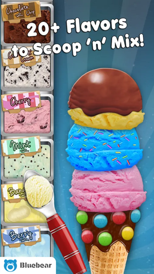 Ice Cream Maker lets you make your own ice cream from scratch but also pick and mix a huge variety of cones, flavors, and toppings like you would at an ice cream shop.