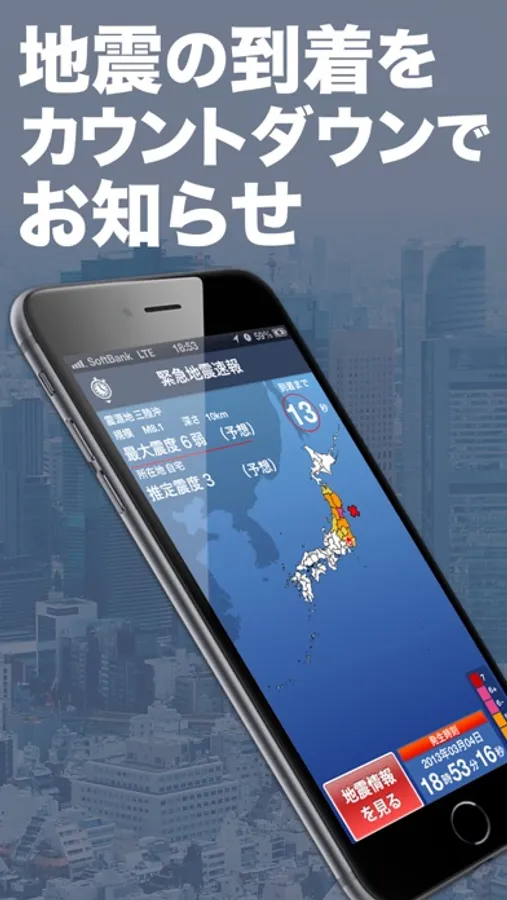 アプリ起動時は、音声によるカウントダウンにて、地震の到達をお知らせします。