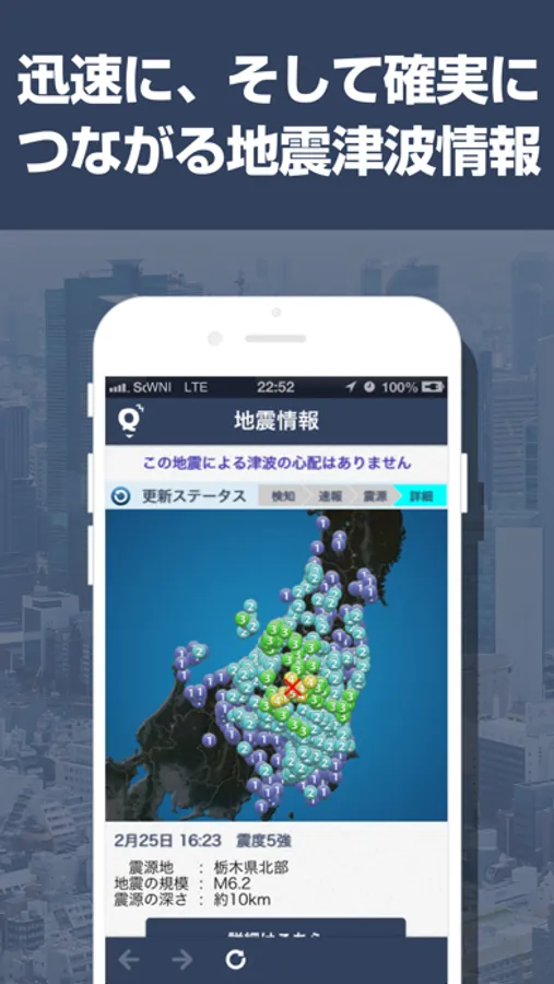 地震津波の会のアプリは、1秒でもはやく地震速報・津波警報・津波注意報をお届けするために、バックグラウンドでもすぐにデータ受信し通知できるように設計されています。