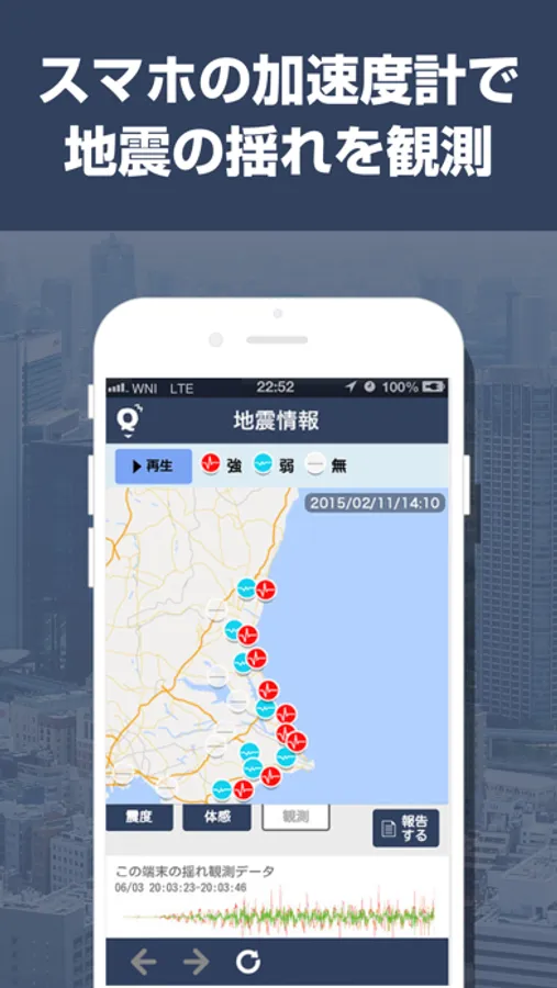 また、現地からの地震の揺れに関する情報をリアルタイムに確認、報告することができます。