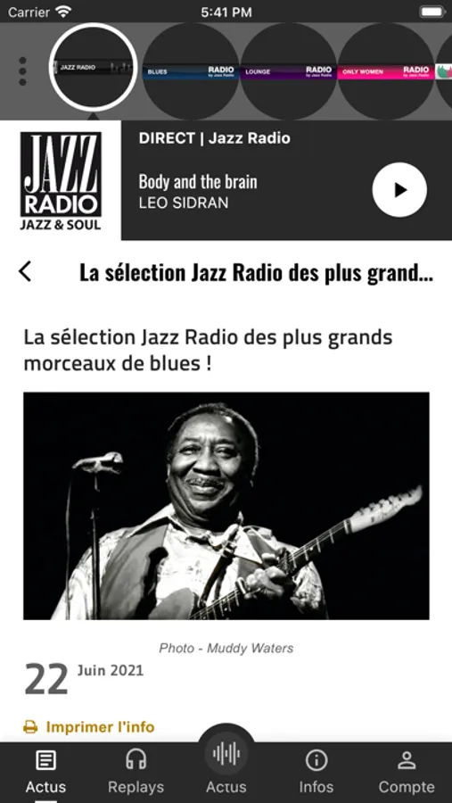 Des émissions en direct, des invités culturels, des artistes et groupes de Jazz, de Blues, de Soul ou de Groove, une atmosphère chic et cosy… retrouvez le meilleur de Jazz Radio sur votre mobile grâce à cette application indispensable à tous les amateurs de jazz.