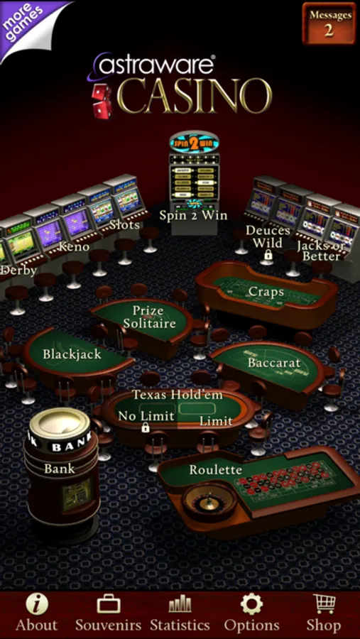 Astraware Casino includes instructions on how to play each of the games, so you can enjoy them without playing with real money. Astraware Casino includes a bank where you can get an overdraft if your luck is out, or stash your cash if you win big!