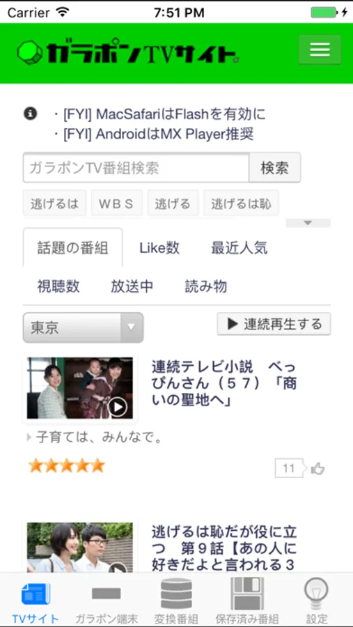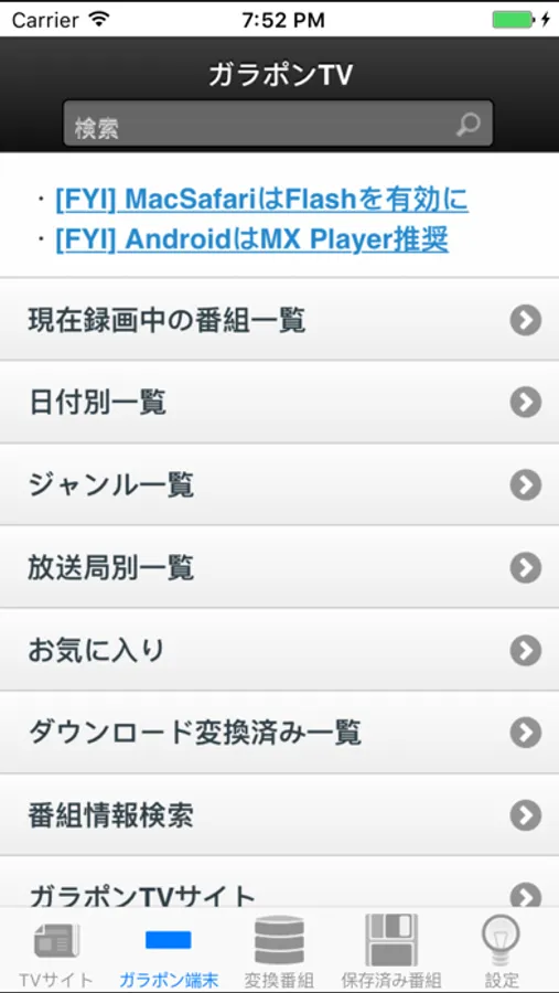 地デジのテレビ番組(ワンセグ)を8チャンネル×24時間×最大120日間分、全て録画するガラポンTV(http://garapon.tv)のiOS機器(iPhone/iPad/iPad mini/iPodTouch)用アプリです。
