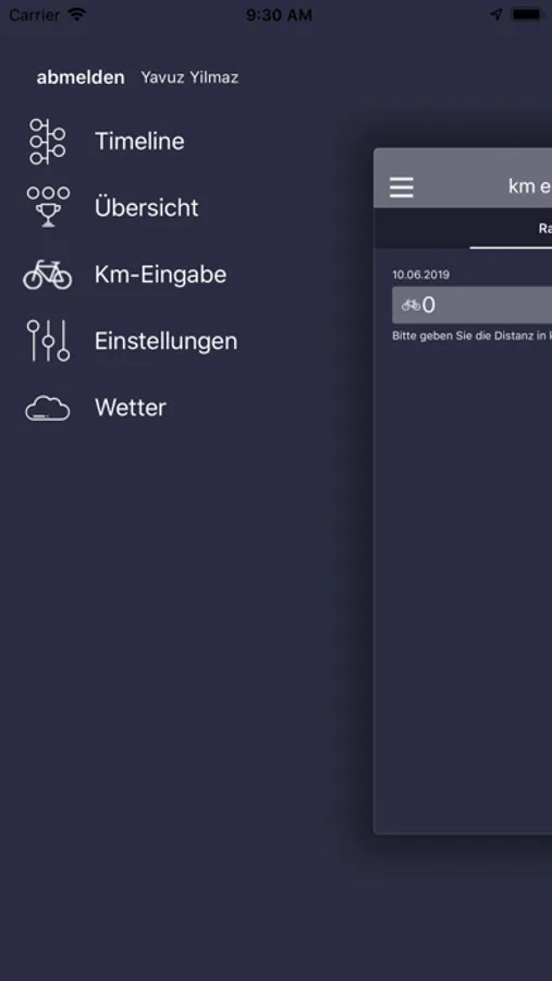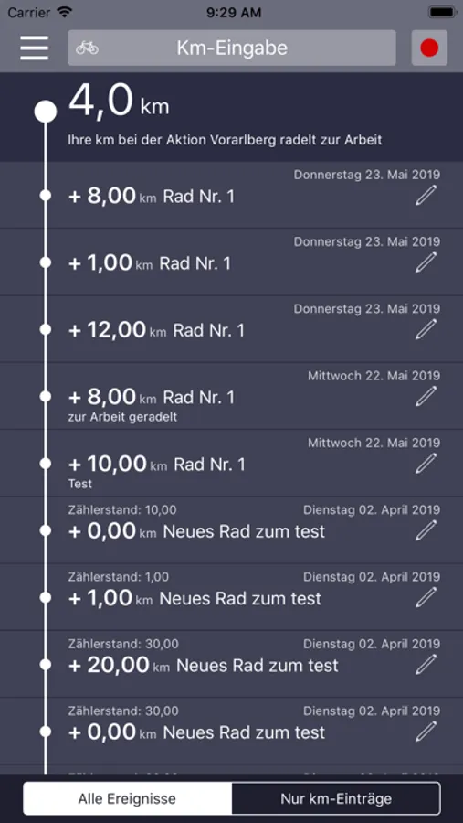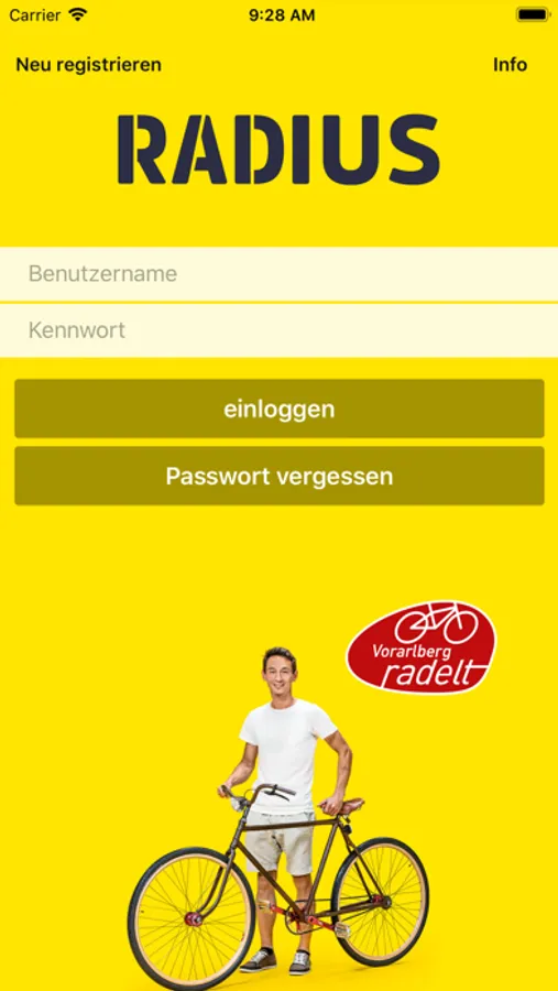 Erfassung der im Rahmen von RADIUS „Vorarlberg radelt“ geradelten Kilometer. Gibt Einblick in die persönliche Statistik der geradelten Distanz, bietet die Möglichkeit, geradelte Entfernungen und Höhenmeter von einzelnen Strecken "mitzutracken", sich persönliche Radler-Ziele zu setzen oder mit Freunden zu vergleichen, ein Teamrennen durchzuführen, die Wetterprognose abzurufen und Dienstfahrten mit dem Fahrrad einfach zu erfassen.