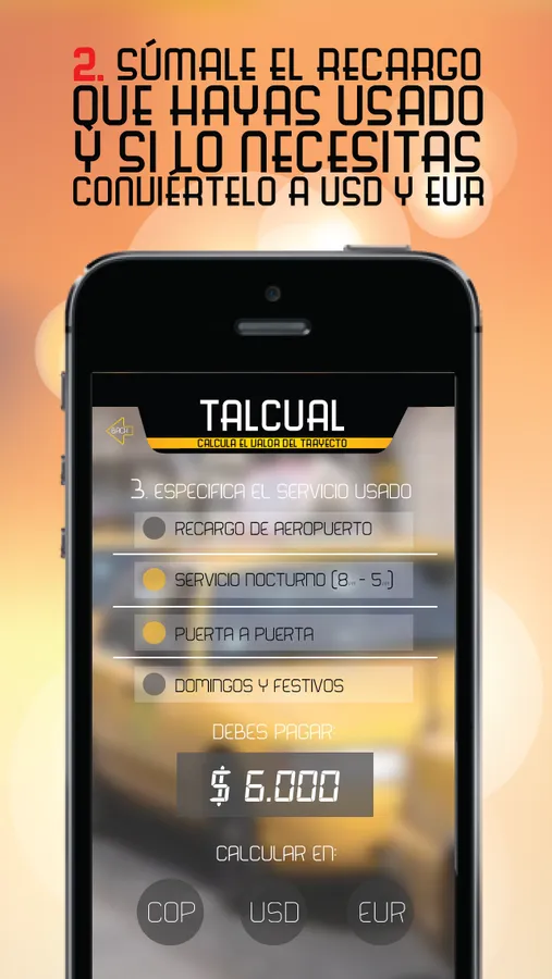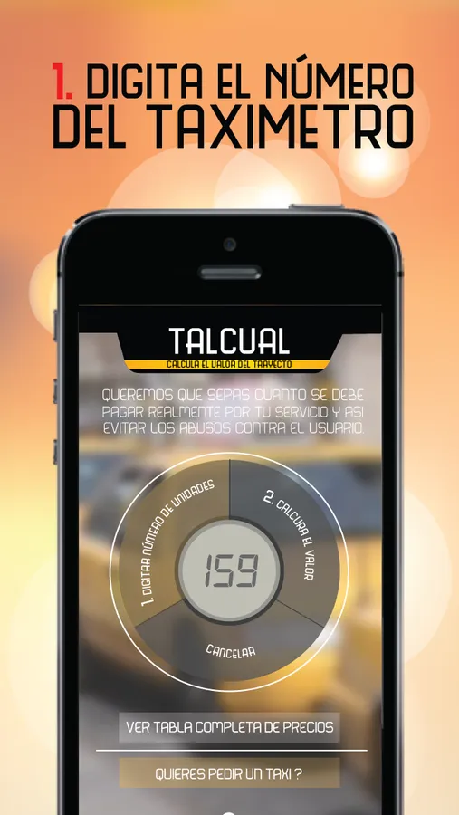 ¿Estás cansado de pagar más de lo justo, cada vez que un taxi te deja en tu destino? Con TalCual, ese problema terminó. Esta aplicación, COMPLETAMENTE GRATUITA, te permite calcular de una forma rápida y sencilla -a partir del número que aparece en el taxímetro al final de tu trayecto- el costo que debes pagar, teniendo en cuenta recargos adicionales como el nocturno, aeropuerto o llamada telefónica.