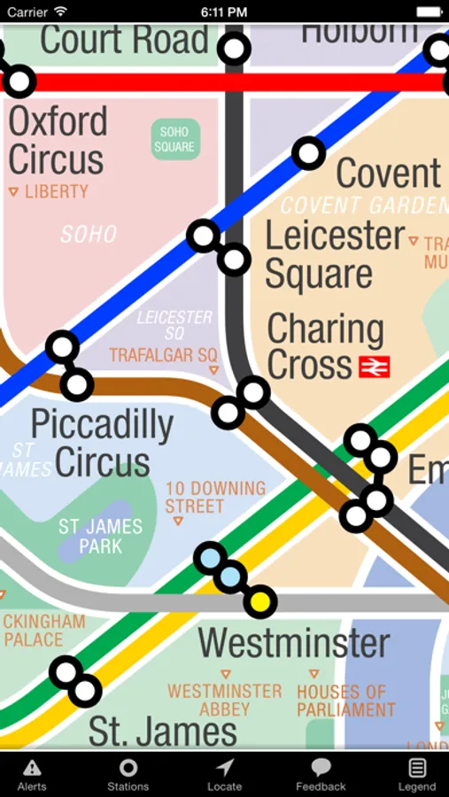 A clearer London Tube map with live alerts, street/satellite maps, station locator, and neighborhoods.