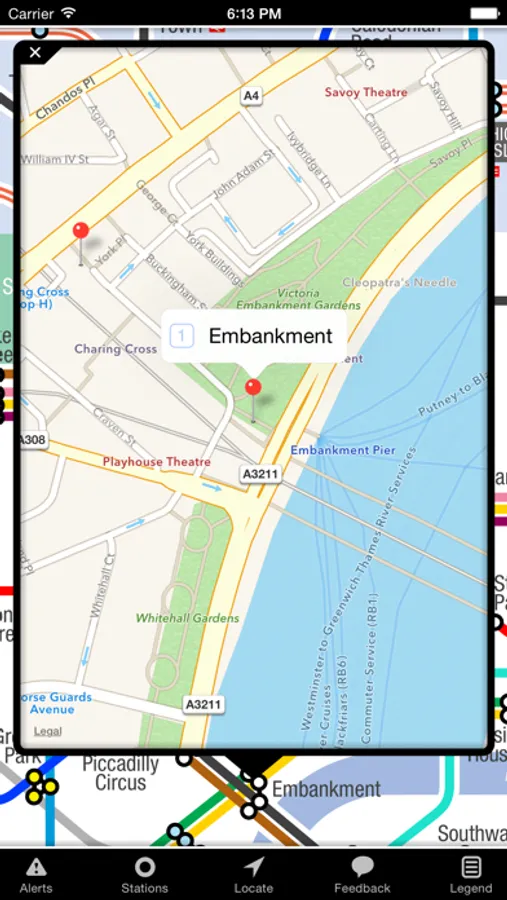 - touch and hold any station to bring up a large street view map highlighting that station