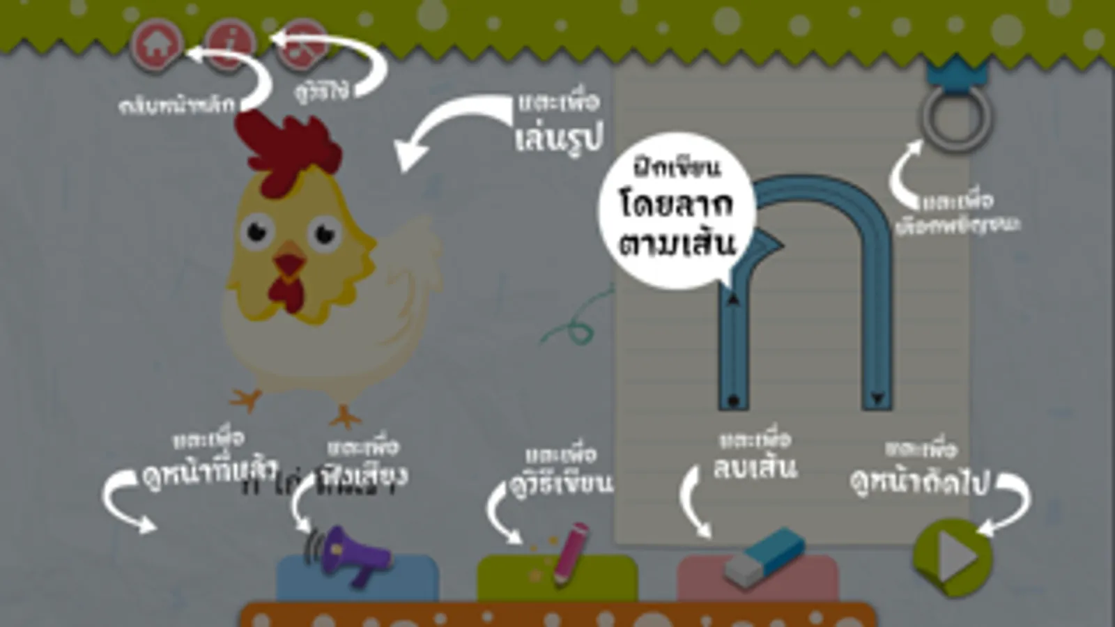 + View how to write all 44 Thai consonants with easy-to-watch animations and children can also practice writing along with the visuals.